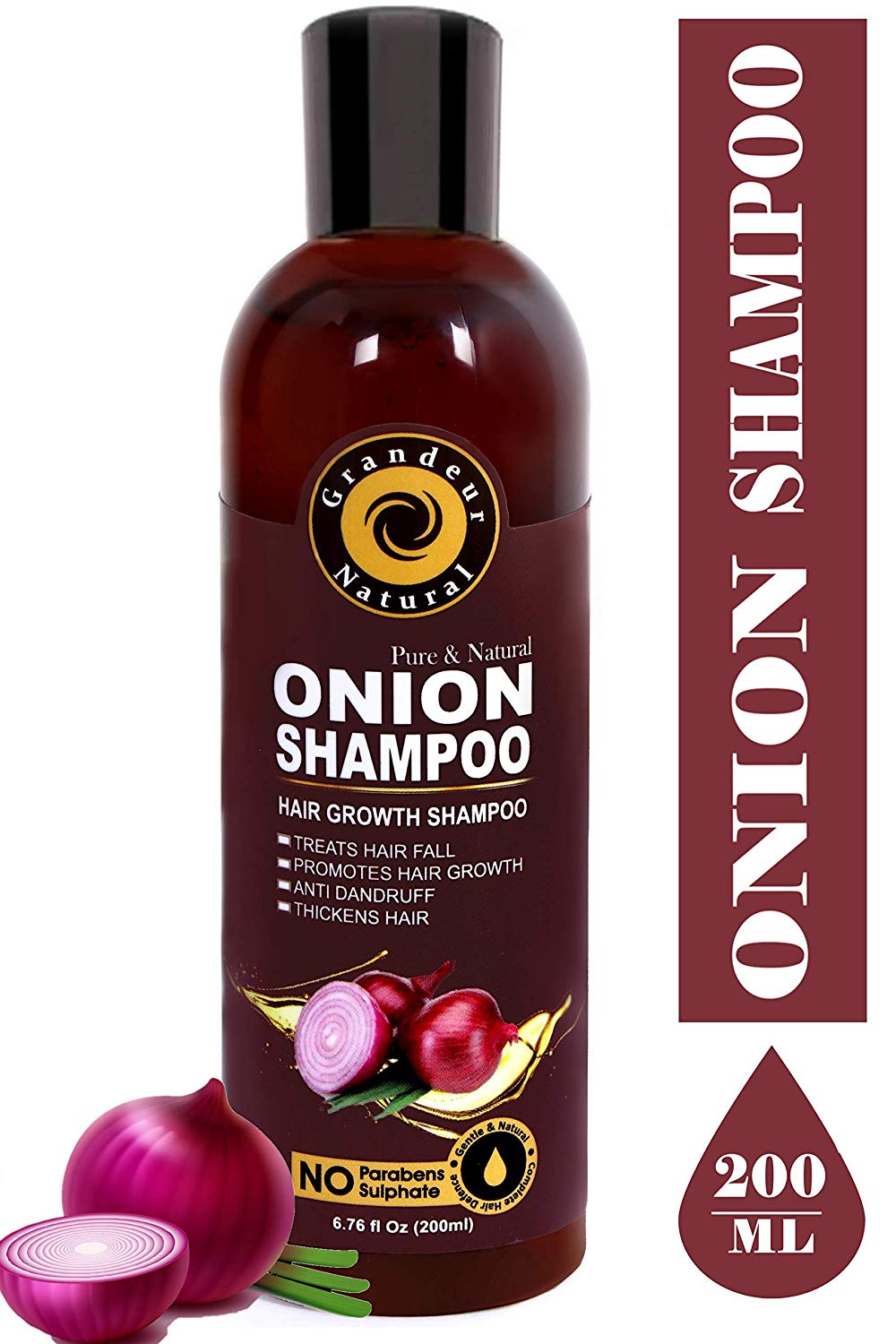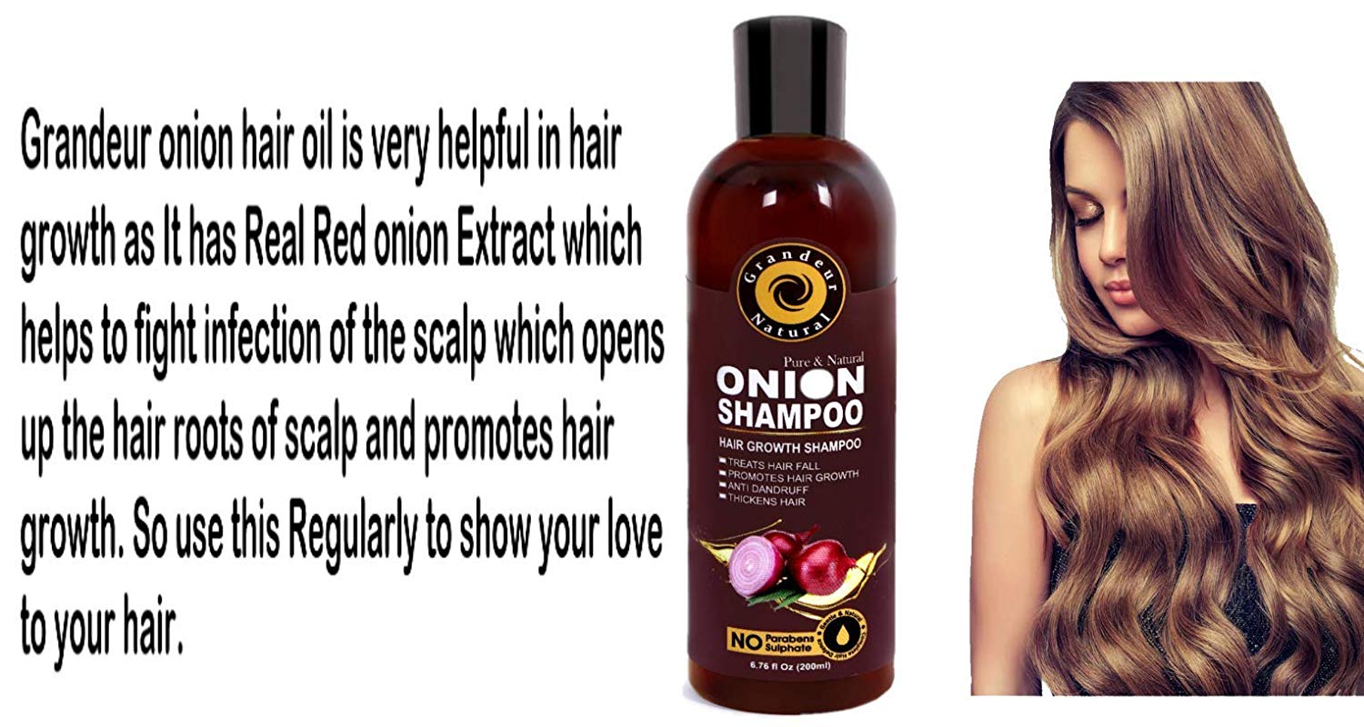 Grandeur Onion Shampoo For Hair Growth With Aloevera, Alkanet Root And Curry Leaf – SLS and Paraben Free – For All Hair Types – 200 mL