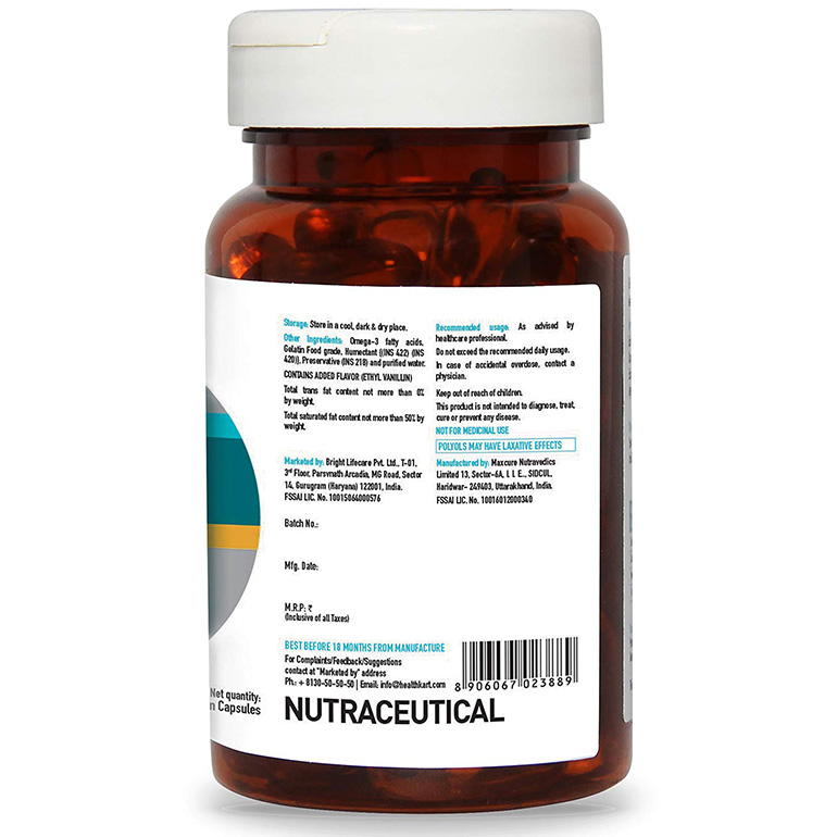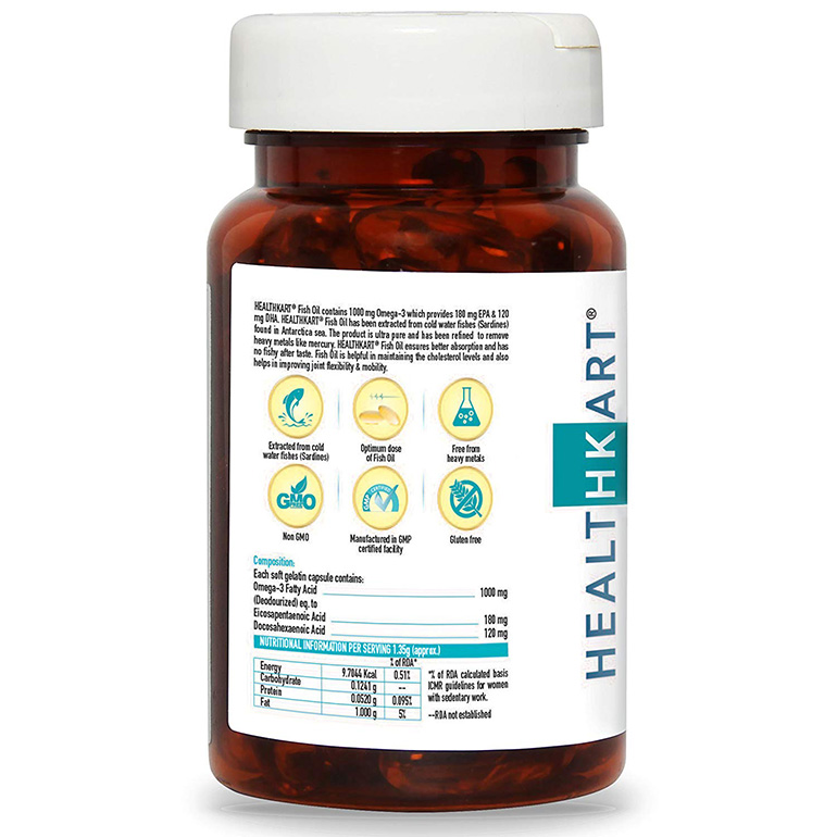 Healthkart Fish Oil (1000 Omega 3 , With 180 Mg Epa & 120 Mg Dha) 60 Softgels
