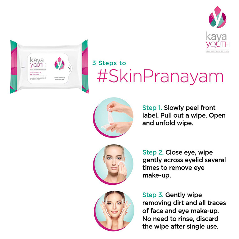 Kaya Youth O2 Oxy-Infusion Face Wipes, 30 Pieces
