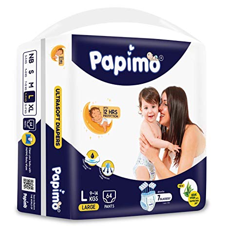 Papimo Baby Large Size Diaper Pants, 64 Count