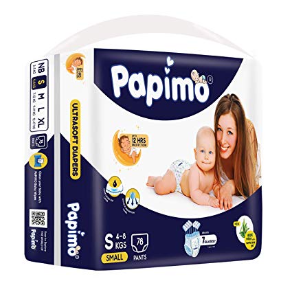 Papimo Baby Pants Diapers with Aloe Vera , Small, 78 Count