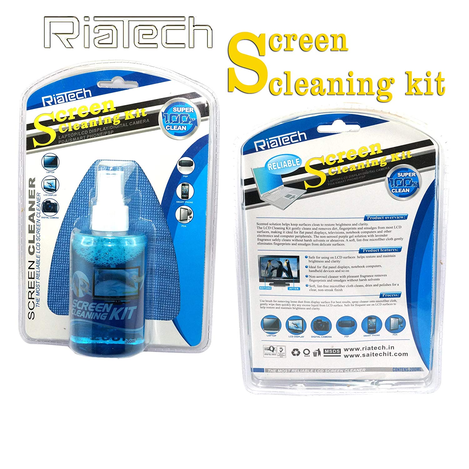 RiaTech® 2 in 1 Screen Cleaning Kit for Laptops,Mobiles,LCD,LED,Computers,TV (200ml)