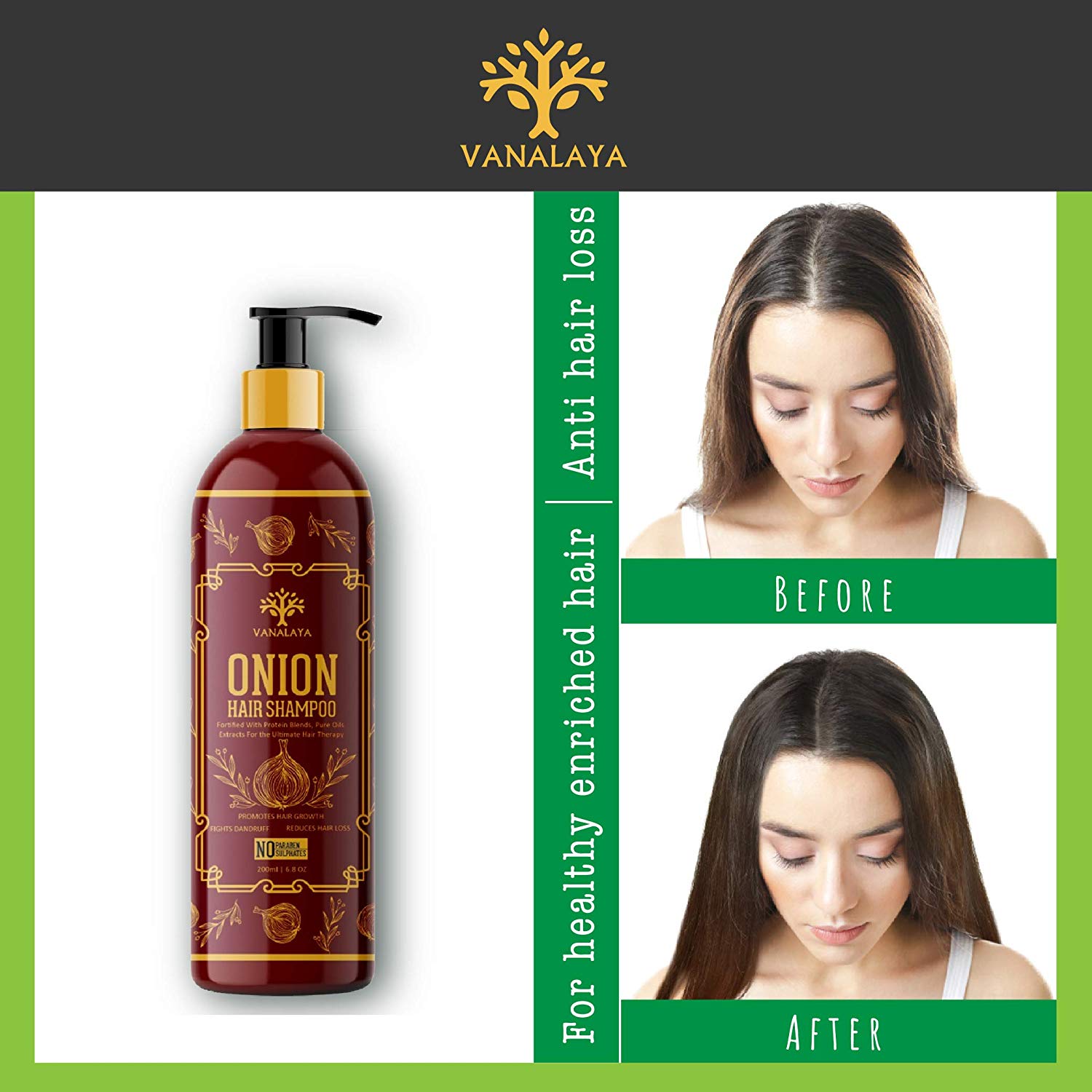 Vanalaya onion hair shampoo for Hair Growth and Dandruff control – No parabens and Suplate 200ml